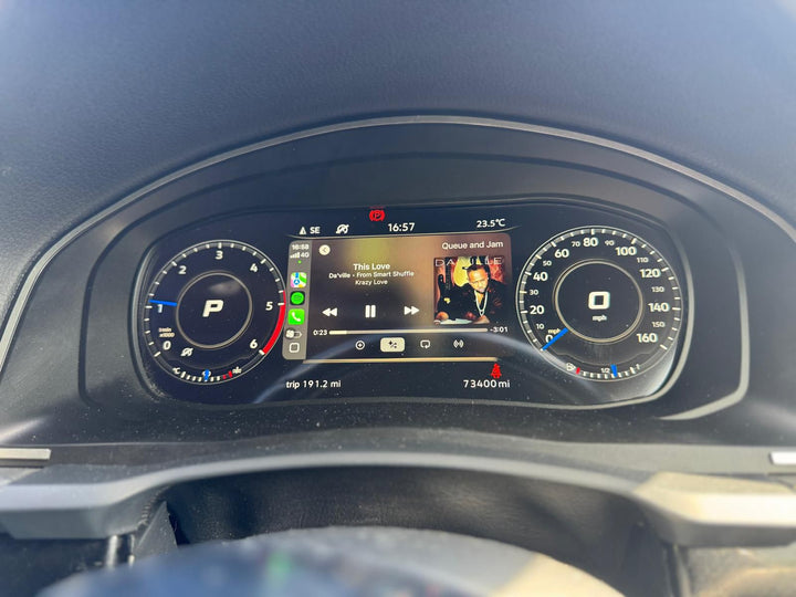 Factory gauges are outdated. The PowerHaus UK digital cockpit gives your Caddy Mk5 a modern, full-screen driving display, just like high-end Audis and BMWs.